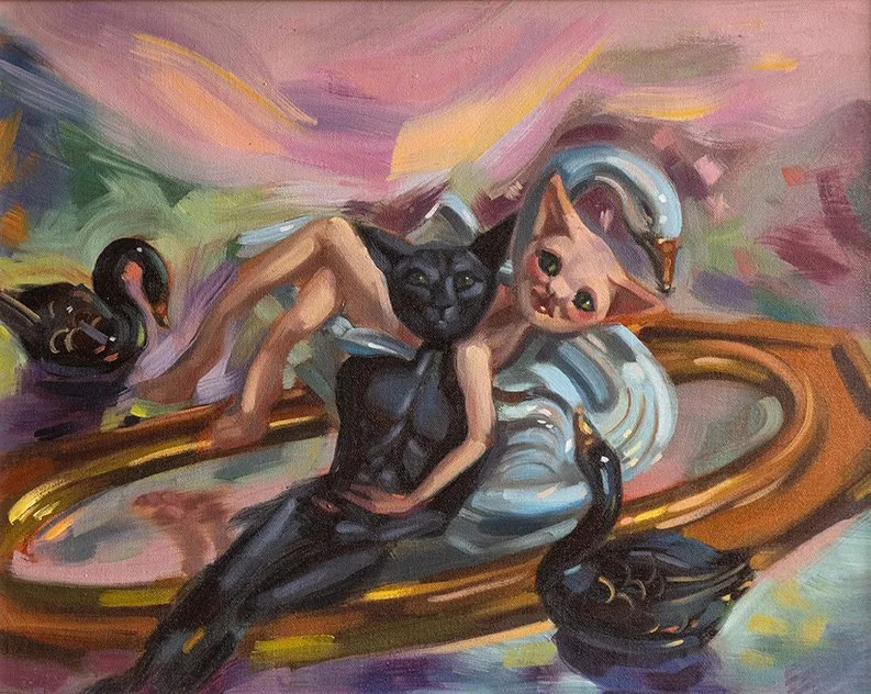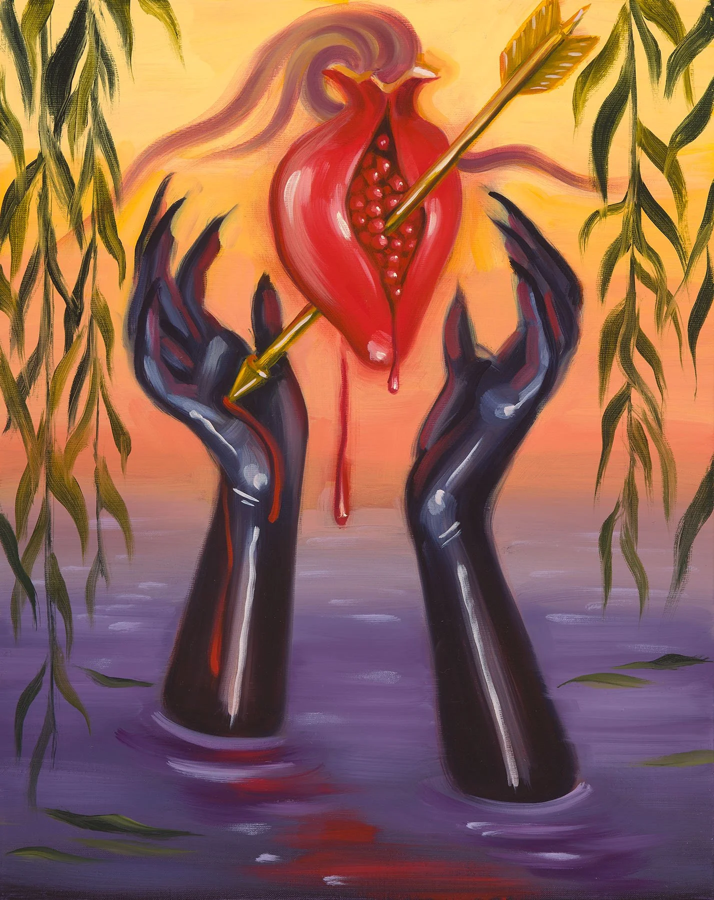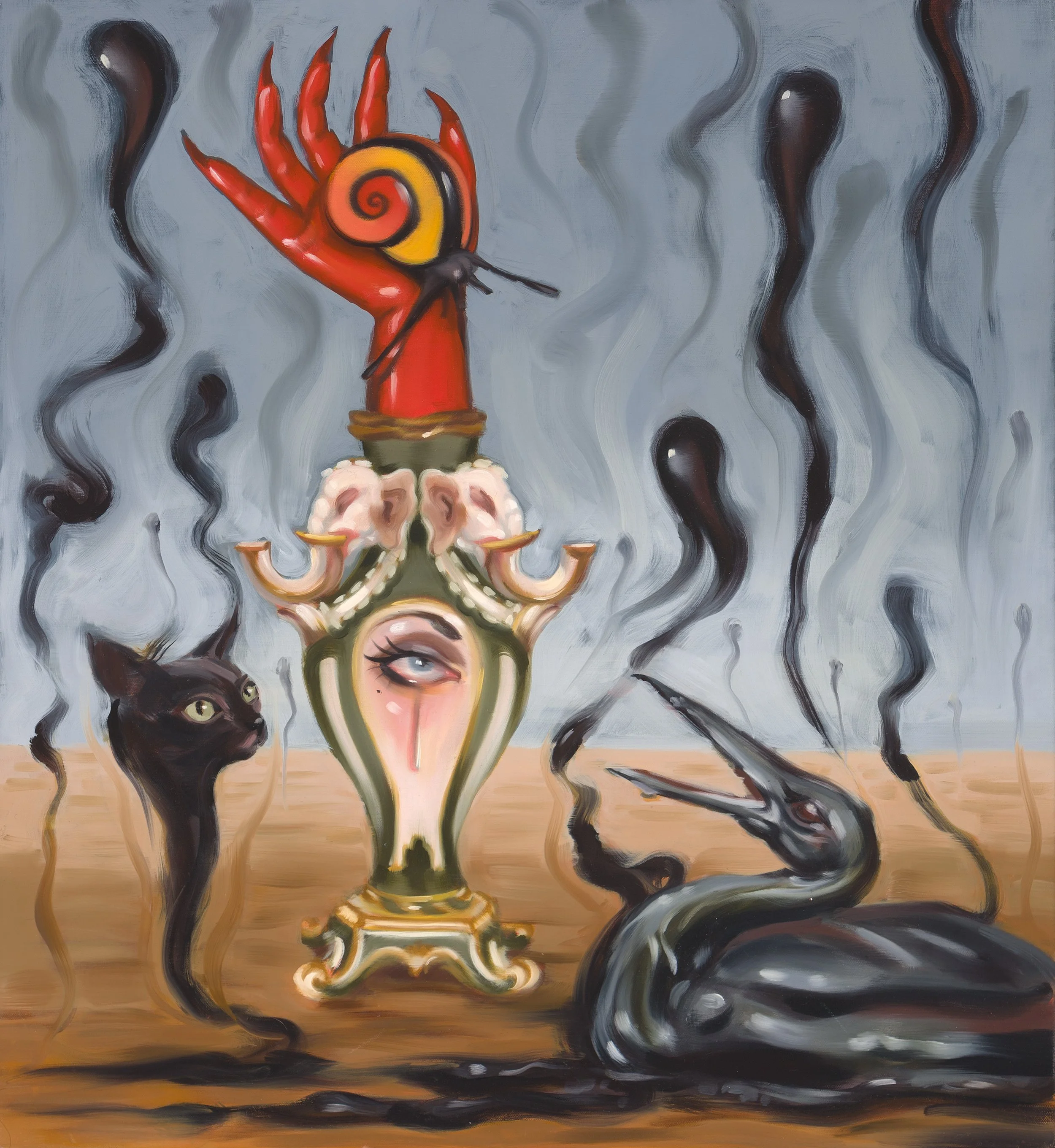 Gravitas is a body of work created in 2023 and finished in early 2024, inspired by the processing of personal and collective grief. The surreal landscapes and still-lifes transport us into an imaginary world. These paintings serve as incantations manifesting messages from beyond.
